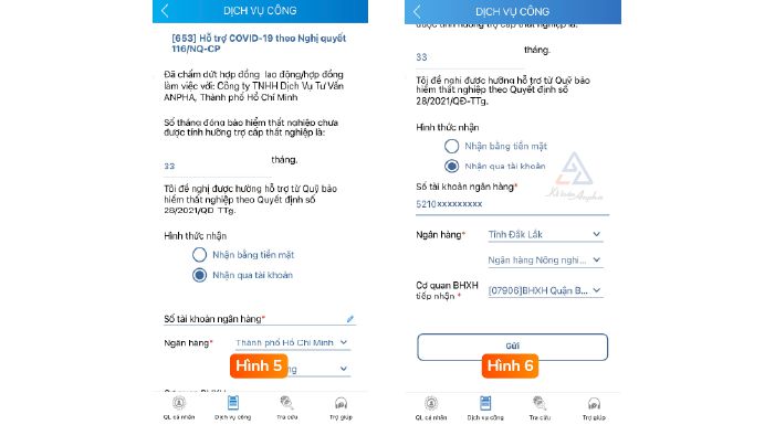 - Check the information again and select “Receive via account” >> Fill in the account number and receiving social insurance agency (similar to image 5);
